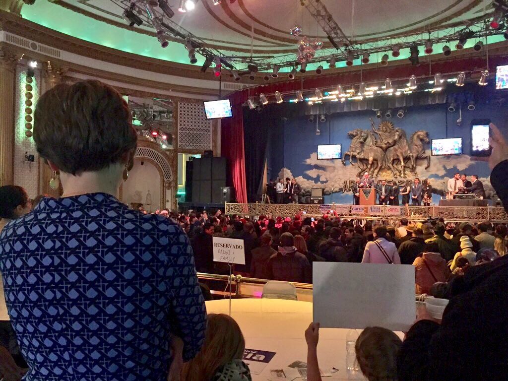 Fritz Kaegi's wife, Rebecca, and three children look on during his acceptance speech for Cook County Assessor at Apollos 2000 on Mar. 20, 2018.